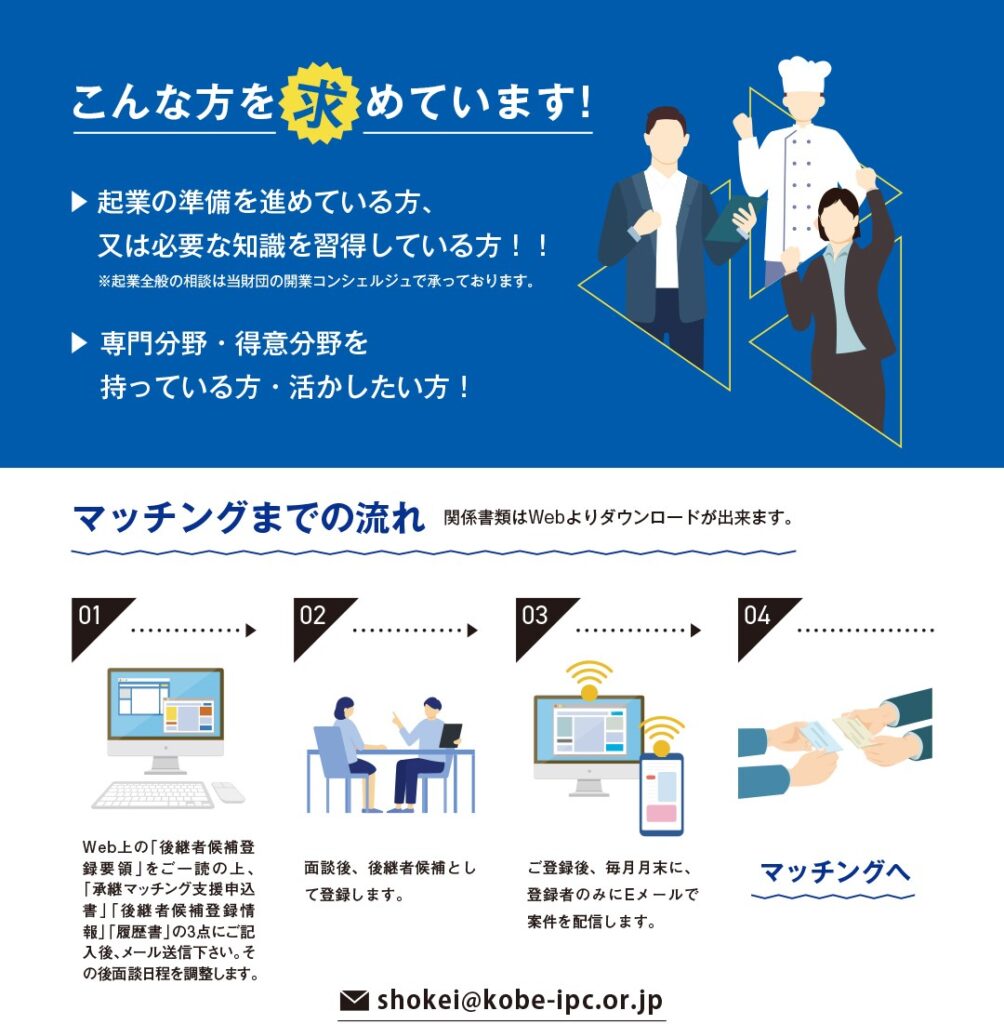 - 当事業は、当財団が支援を行う企業の後継者候補として起業家又は企業を引き合わせるものであり、雇用のあっせんを行うものではありません。