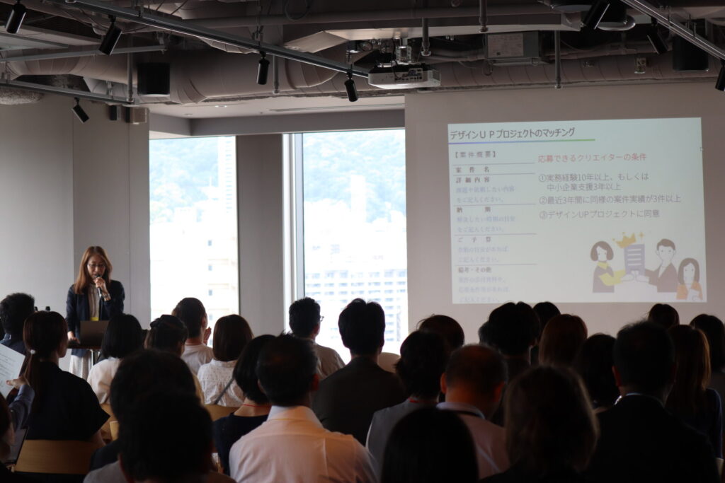 当財団から今年度のデザインUPプロジェクトの概要をご説明の後、市担当者よりKOBE CREATORS NOTE(神戸クリエイターズノート)の取組みをご紹介します。