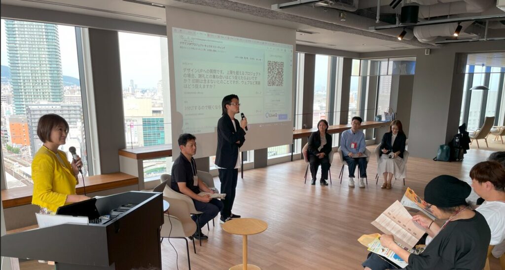 2025年6月6日金曜日、当財団の支援事業「デザインUPプロジェクト」の紹介と市内中小企業とクリエイターの交流を目的に、アンカー神戸にてキックオフミーティングを開催しました。60名を超えるご参加をいただき、会場は大いに賑わいました。また、今回のイベントでは、会場からのご意見やご質問をリアルタイムで反映するリアルタイムQ&Aツールを活用し、双方向型のコミュニケーションで進行することを試みました。