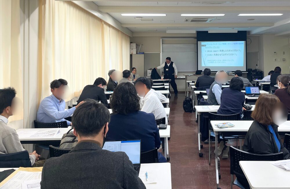 訪れたのは、高等学校教育実践研修商業グループの研修会に登壇するため。