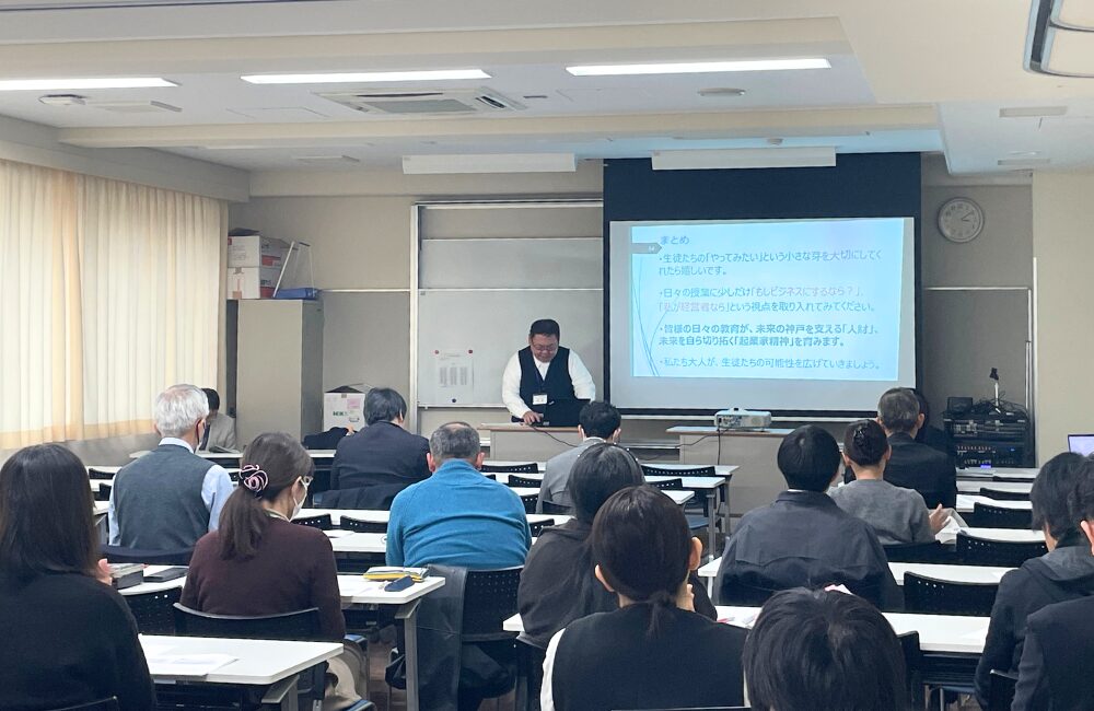 神戸市立の商業高校で日々教育現場に立つ先生方に向けて、「神戸の未来を拓く! 商業科から生まれるアントレプレナーシップ」をテーマに、起業・創業、そしてアントレプレナーシップ(起業家精神)についてお話ししました。