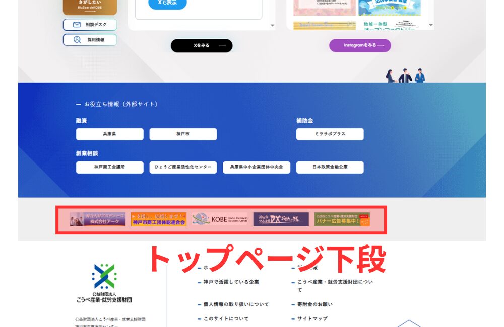 こうべ産業・就労支援財団では、ホームページに広告枠を設け、有料のバナー広告を募集しています。